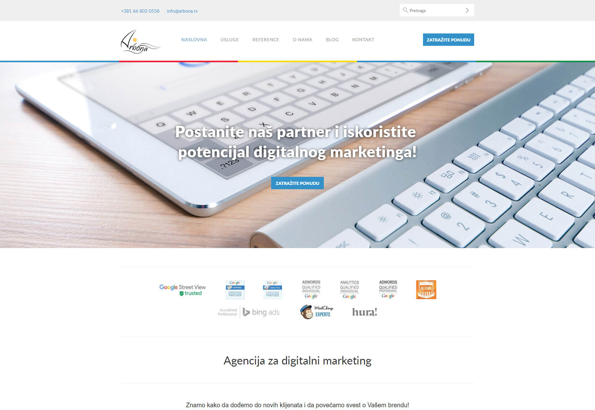 One of the leading regional digital marketing agencies, has expanded business to Serbia. The new website, made in recognizable design provides all the needed information, including services for your business improvement. Choose Arbona for your strategic partner and boost your own business!