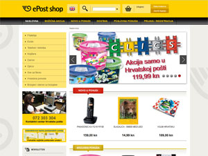 Hrvatska pošta ima novi webshop. Od sada možete iz udobnosti Vašeg doma, 24 sata dnevno, naručiti i poslati nekome prigodan dar, kupiti potreban pribor djeci za školu, igračke, bojanke i slikovnice. Možete kupiti pribor za filateliju, kao i poštanske marke, albume, dopisnice,omotnice prvog dana, maksimum karte, karnete, kao i zbirke. Nadalje možete naručiti i EvoTV, kupiti novi mobitel, telefon ili neku od mnoštva novih knjiga.