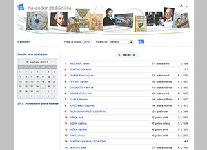 Kalendar godišnjica Knjižnica grada Zagreba sadrži više od 2800 zapisa o zbivanjima i osobama koje su na različite načine obilježile povijest. Za traženu godinu omogućuje ispis godišnjica na osnovi petogodišnjeg razdoblja, a svi se podaci unutar jedne godine mogu pregledavati po mjesecima, abecedno i kronološkim slijedom.