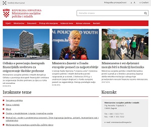 Ministarstvo socijalne politike i mladih ima nove web stranice. Osim općih informacija o djelokrugu rada ministarstva i zakonskim okvirima unutar kojih djeluje, nova web stranica pruža i druge aktualne informacije. Kao centralno mjesto za sve teme pod djelokrugom ministarstva možete pristupiti dokumentima, vidjeti istaknute teme, te između ostalog saznati željene kontakte u Adresaru ustanova.