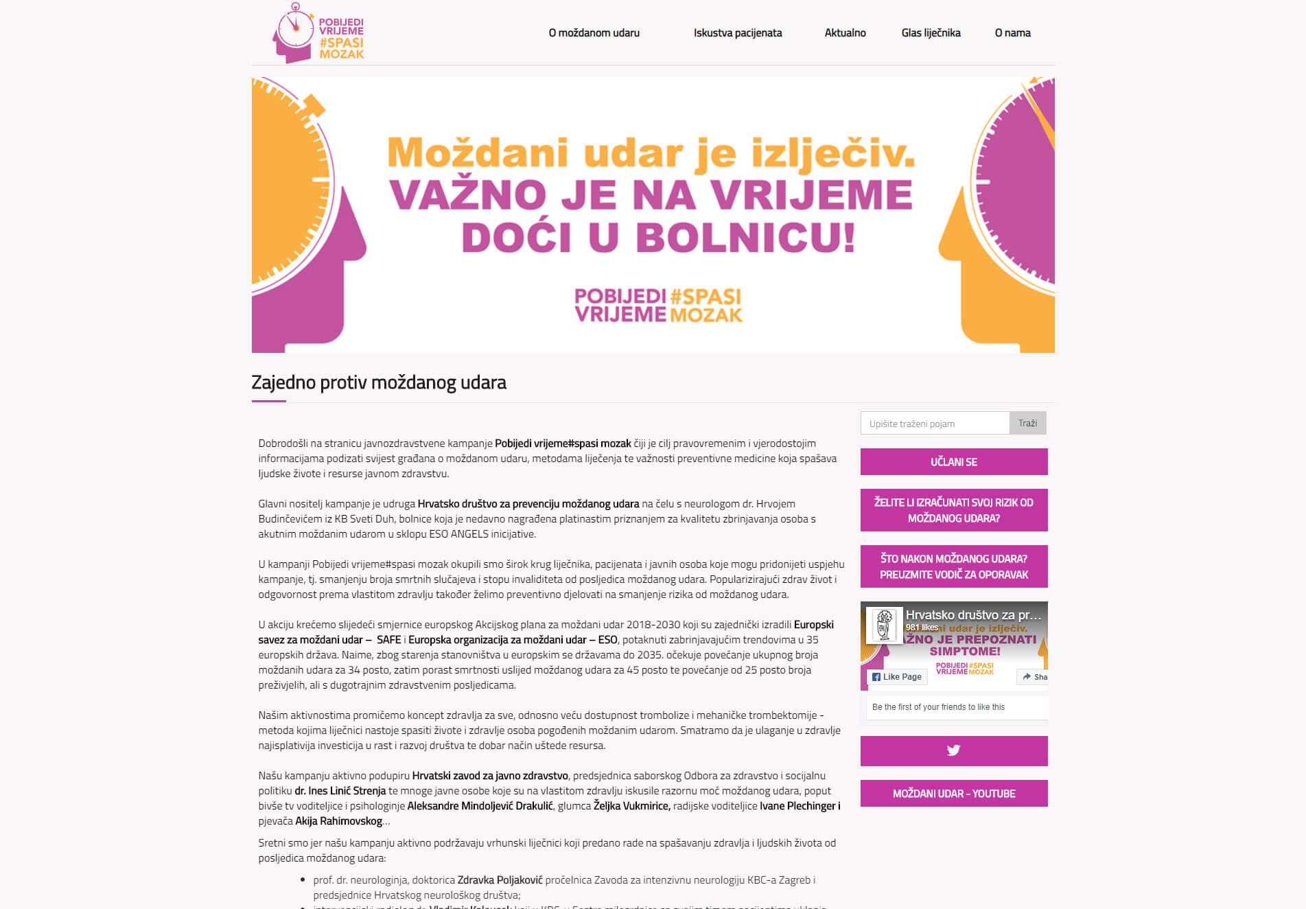 Globaldizajn has made its contribution to the campaign addressed to the importance of prevention, early detection of symptoms and stroke treatment. In cooperation with the Rizol media organization, supported and organized by the Croatian Society for Stroke Prevention and the Croatian Public Health Institute, the campaign is supported by the web site where you can find useful tips on how to recognize symptoms, take a look at experiences and inform.