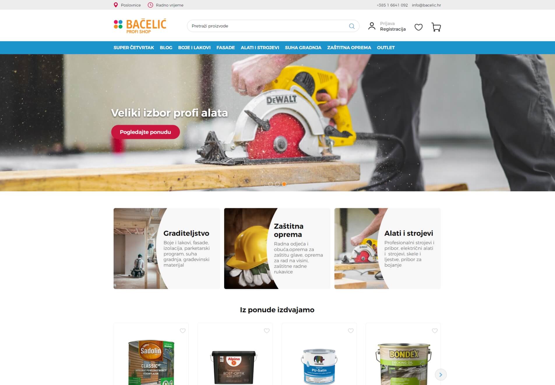 Bačelić profi shop jedna je od najpoznatijih specijaliziranih trgovina boja i lakova, čija je kvaliteta proizvoda i usluga prepoznata od strane hobista i profesionalaca. Inovativnost poslovanja svakako prati novi web shop koji je u cijelosti stvarao Globaldizajn - od wireframe-a dizajna do svih dodatnih funkcionalnosti koje omogućavaju korisnicima lakše snalaženje i brzu kupovinu, a timu Bačelić Profi shopa kvalitetno upravljanje proizvodima, akcijama i katalozima.