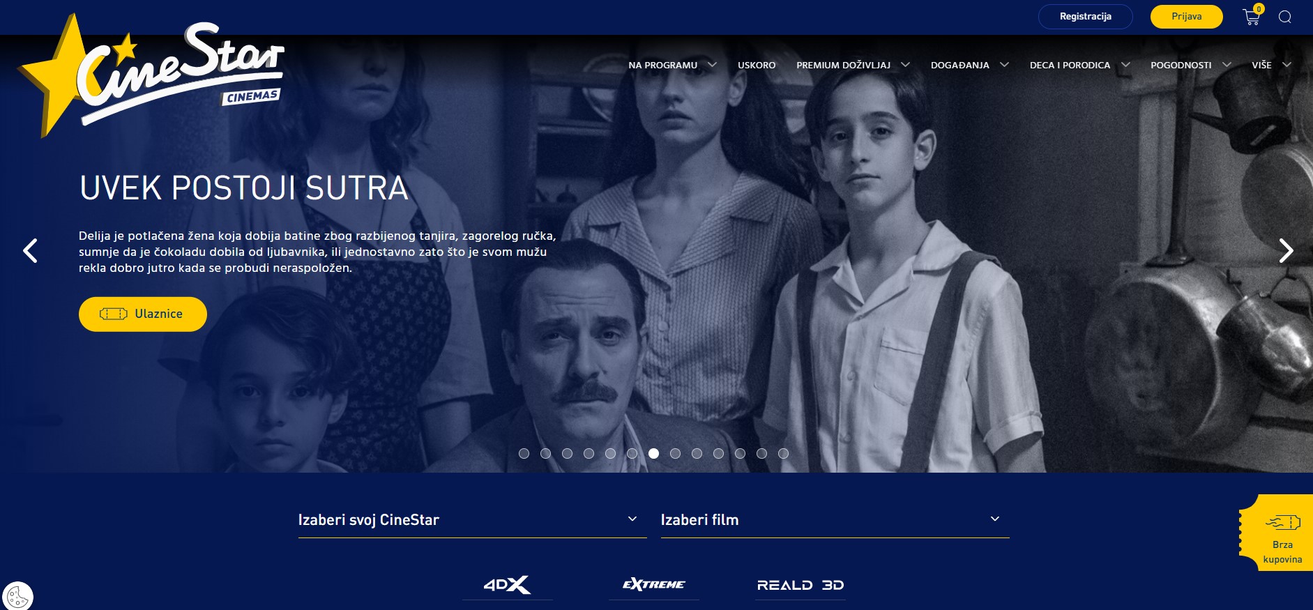 U suradnji s Blitz - Cinestar, predstavljamo novu web stranicu za Cinestar Srbiju! Nova stranica osmišljena je kako bi vam omogućila brži i jednostavniji pristup svijetu filmskih hitova. S njom možete lako kupiti karte, pregledati raspored filmova i pratiti najnovije filmske novitete. Na stranici ćete također pronaći informacije o popularnim događanjima poput Cinelady, Cinehero, Cinehorror i Cine Book Club, koji će svaki film učiniti posebnim. Također, saznajte više o organizaciji dječjih rođendana, školskih projekcija i privatnih projekcija za posebne prigode.