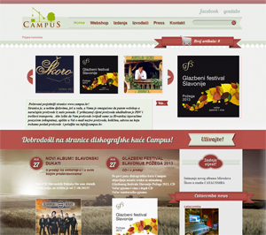 Diskografska kuća Campus ima novi webshop, na kojem možete kupiti razne glazbene albume, mp3 datoteke i knjige. Isto tako možete pronaći pjesme od renomiranih glazbenika iz tamburaškog svjeta, čitati aktualnosti te sve o Campusu.