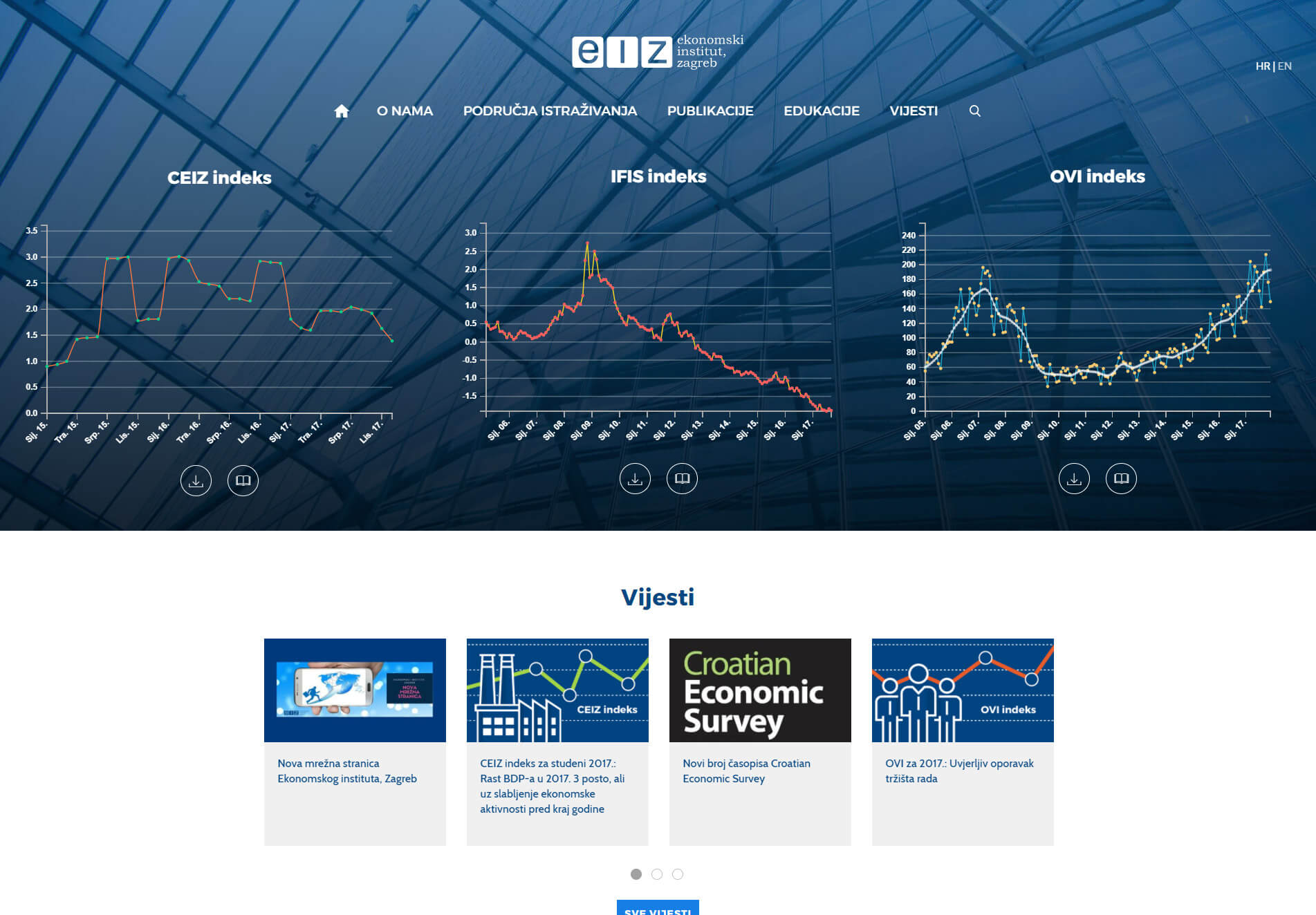 Pri izradi weba Ekonomski institut, Zagreb cilj je bio osigurati jednostavniji pristup informacijama. Novo rješenje omogućuje jasniju i jednostavniju navigaciju unutar stranica kako bi informacije o aktivnostima, proizvodima, projektima i publikacijama bile što dostupnije i transparentnije. Novi web donosi i poboljšano korisničko iskustvo. Sadrži između ostalog, područja istraživanja i pregled povezanih radova, projekata i istraživača koji se bave pojedinim područjima, jednostavniji pristup publikacijama (časopisima i knjigama), te interaktivne indekse istaknute na naslovnici koji pružaju korisnicima bolji uvid u hrvatska gospodarska kretanja i ekonomske trendove.