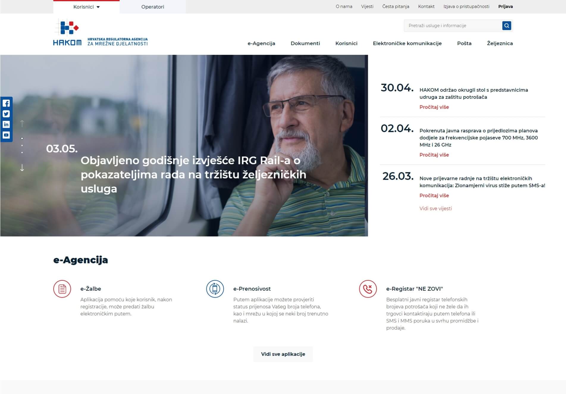 HAKOM ima redizajniranu i modernu web stranicu koja je većim dijelom prilagođena Smjernicama za osiguranje digitalne pristupačnosti web stranica. Globaldizajn je u suradnji sa stručnjacima iz HAKOM-a razvio novu stranicu 'from the scratch' – pažljivo pozicionirane komponente i funkcionalnosti radi jednostavnije i konkretnije podjele informacija za ciljane skupine korisnika omogućuju brzi dolazak do konkretnih informacija. Također, web stranica je izrađena na temelju rezultata istraživanja u koje su bile uključene osobe s invaliditetom.