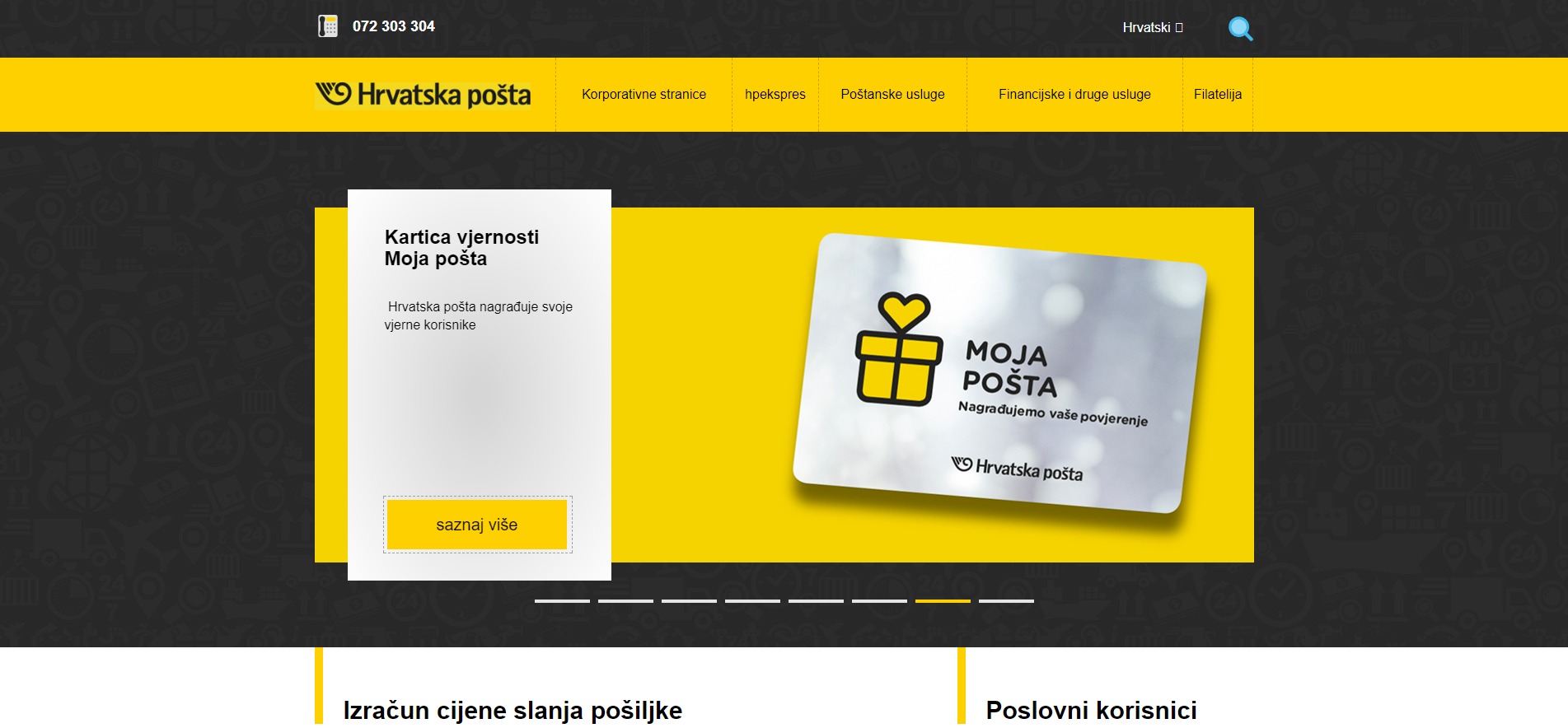 Hrvatska pošta je kao samostalna tvrtka osnovana 1999. godine. Njezina osnovna djelatnost odnosi se na zaprimanje, razradu i uručenje svih poštanskih pošiljaka na području Republike Hrvatske. Web stranicu Hrvatske pošte napravili smo 2012. godine, na kojoj je već tada bilo moguće izračunati cijenu slanja pošiljki, pratiti svoju ekspres međunarodnu pošiljku te mnogo više. Četiri godine poslije, napravljene su nove responzivne web stranice u modernom dizajnu na kojima je također moguće pročitati zadnje novosti, saznati više o vrstama paketa, osiguranju pošiljaka i napraviti izračun cijena slanja pošiljka u unutrašnjem prometu te u međunarodnom prometu.