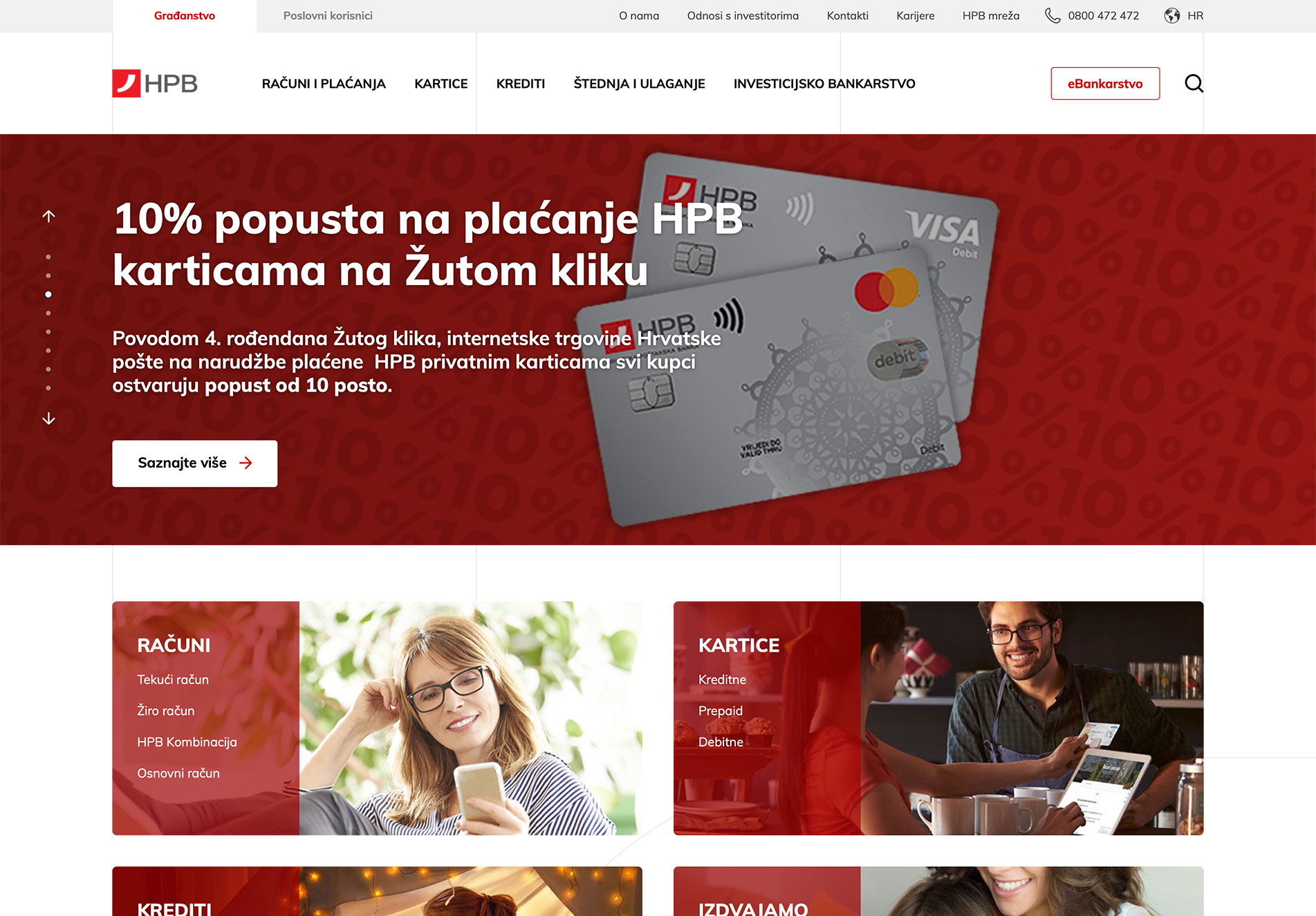 Za našeg klijenta Hrvatsku poštansku banku napravili smo kompletnu analizu tržišta, korisničkih navika i primjenjujući nove Google smjernice napravili potpuno nove web stranice. Za treće desetljeće poslovanja Globaldizajn je napravio novi, moderni, jednostavan i pregledan dizajn koji korisnicima omogućuje jednostavan i brz dolazak do informacija. U backend dijelu su korištene najnovije tehnologije te je time postignut još jedan korak dalje u izgradnji izvrsnosti i povjerenja prema svojim korisnicima.