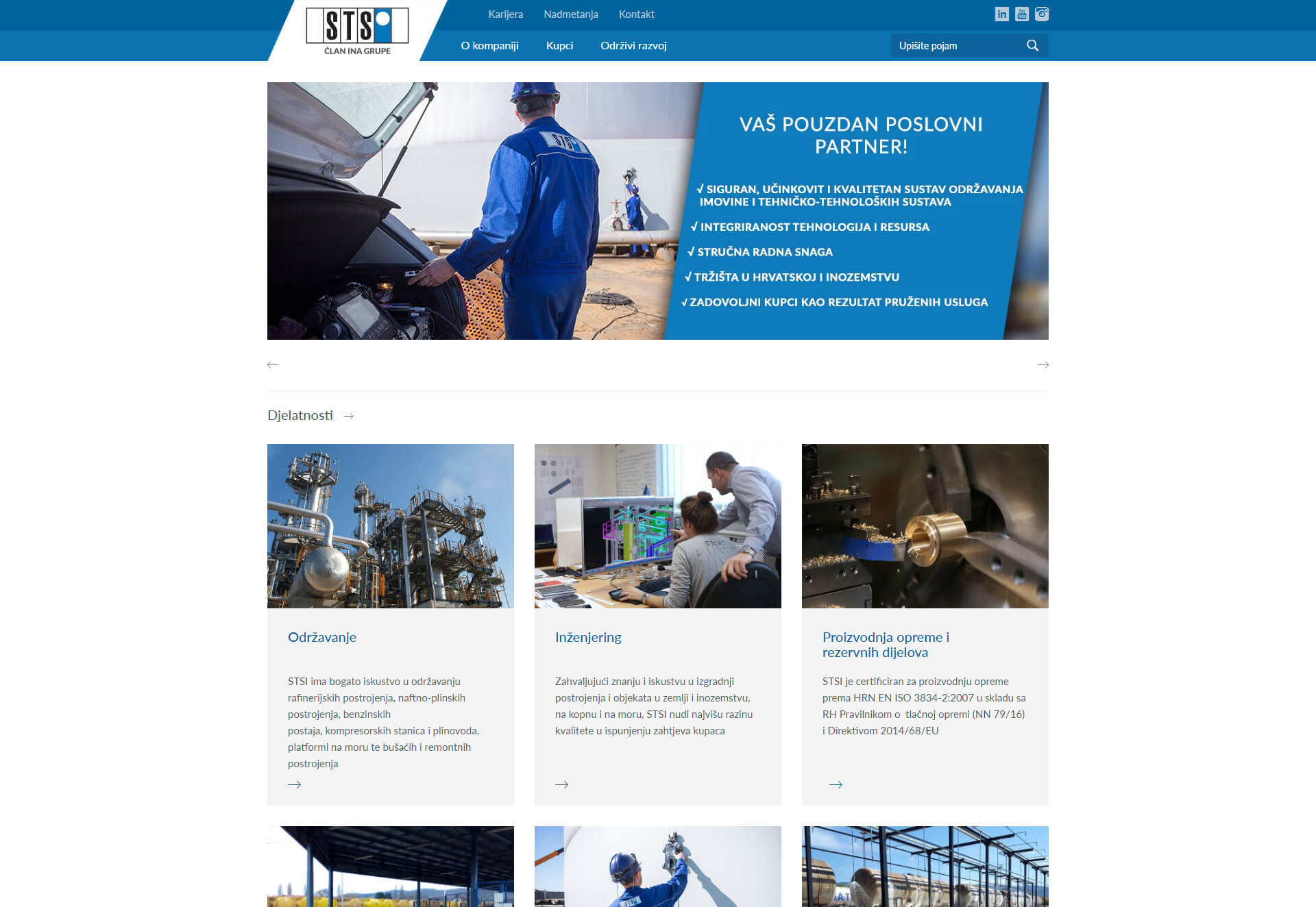 STSI d.o.o. je članica INA Grupe koja se bavi održavanjem i izgradnjom postrojenja, a ujedno je i najveća tvrtka u Hrvatskoj koja se bavi pružanjem cjelovite usluge održavanja, uključujući sve struke. Nove web stranice Globaldizajn je napravio u prepoznatljivom, korporativnom dizajnu.