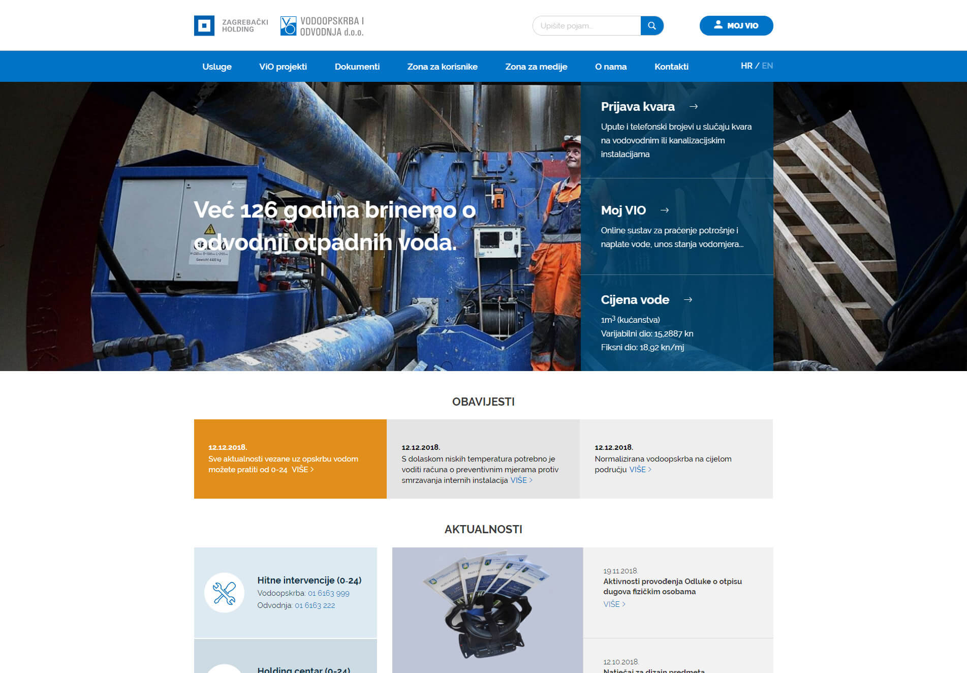 Dugogodišnja uspješna suradnja između Vodopskrbe i odvodnje te Globaldizajna rezultirala je izradom potpuno novih, user-friendly web stranica. Modernim dizajnom lako su dostupne sve informacije te je korisnicima omogućeno da uz mali broj klikova saznaju sve potrebno uz posebno istaknutu zonu za korisnike. Također, možete preuzeti dokumente, obrasce, upoznati se s aktivnostima koje ViO provodi, a za sve turiste, strance i ostale korisnike je dostupan i potpuni sadržaj preveden na engleski jezik.