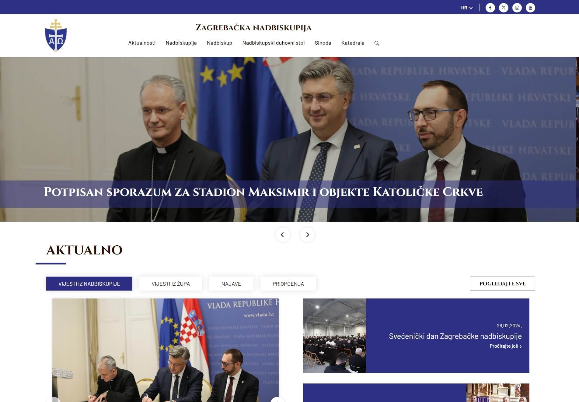 Zagrebačka nadbiskupija objavljuje nove, redizajnirane web stranice, koje su prilagođene korisnicima kako bi se olakšalo pregledavanje i brže pronalaženje ključnih informacija. Novi web sadržaj omogućuje detaljan uvid u sve aktivnosti nadbiskupije, od sjemeništa do katedrale.