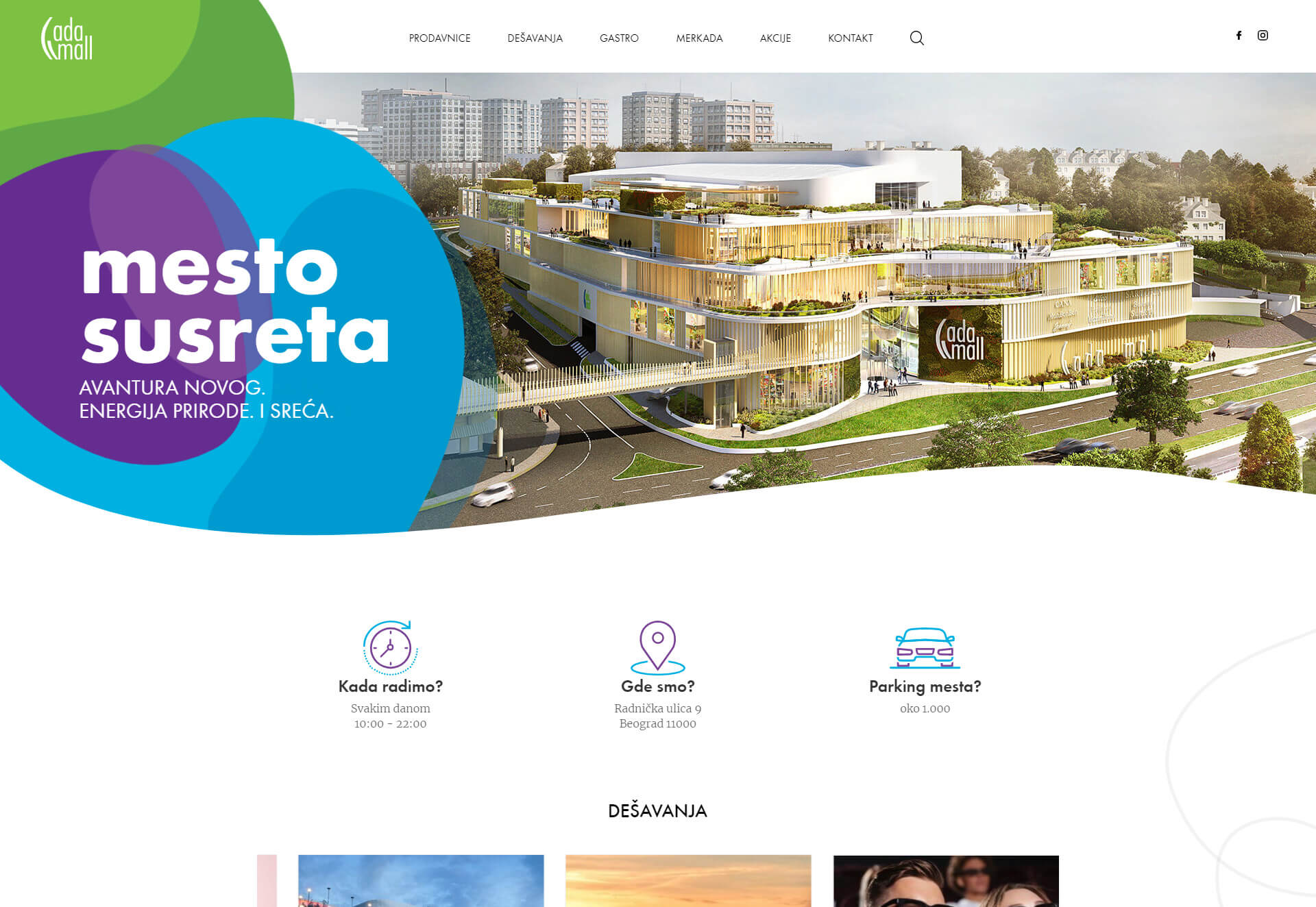 The exclusive shopping center Ada Mall opened its doors on May 25th in Belgrade, on Čukarica near Ada Ciganlija. Globaldizajn had the opportunity to create a unique design for a new website where you can find the latest promotions offered by a shopping center. The meeting place you need to feel and see, and the design of the center itself is transmitted to a website with the idea of preserving the uniqueness of the environment.