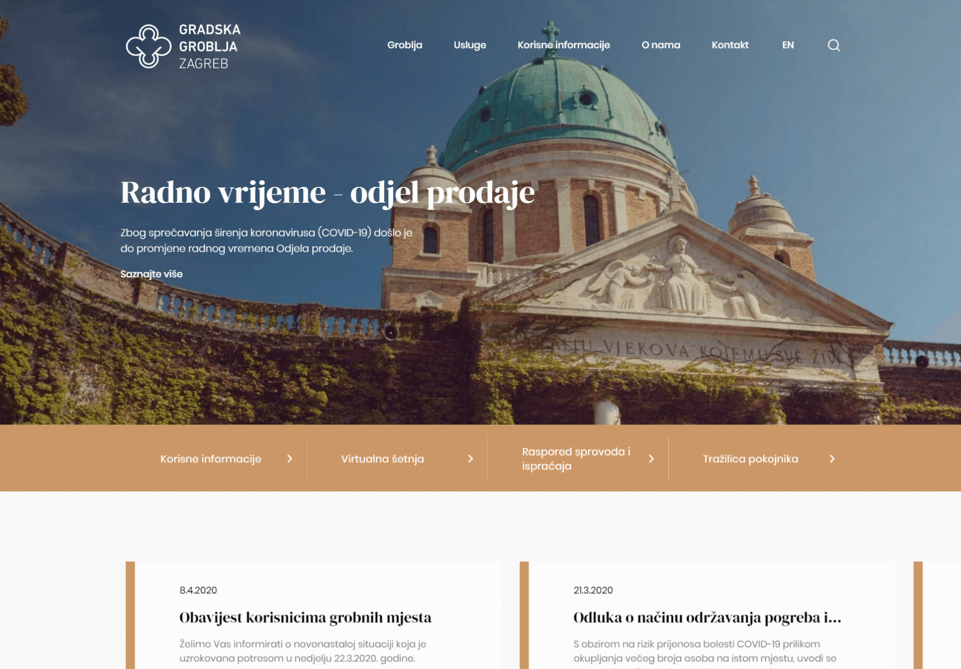 In the second half of the 19th century, specifically in 1873, dates the foundation of the City Cemeteries. Thirty years ago, City Cemeteries d.o.o. have taken over the management of most cemeteries in the city of Zagreb. On the new web site of the Zagreb Holding Branch, you can find all the information you are interested in and be reminded of the beauty of the Mirogoj Cemetery (1879), created by Herman Bollé, which became one of the recognizable symbols of the city of Zagreb.