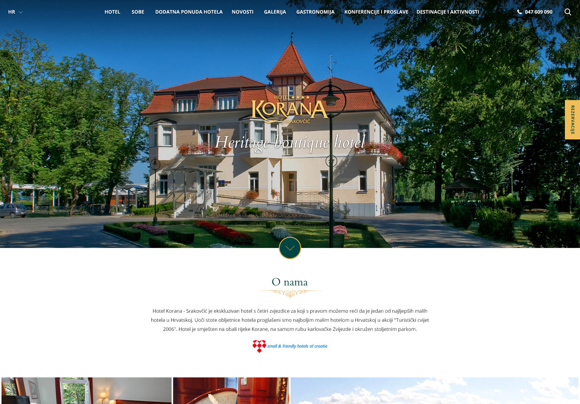 Heritage boutique hotel Korana Srakovčić, placed by the river and surrounded by century old park, was declared the best small hotel in Croatia. In order to show its rich history and vivid present, we made a new website where you can find various activities, other hotel offers or immediately book your accommodation and check for promotions. Furthermore, via new web you can also find out all about a variety of local specialities and drinks or organise conferences.