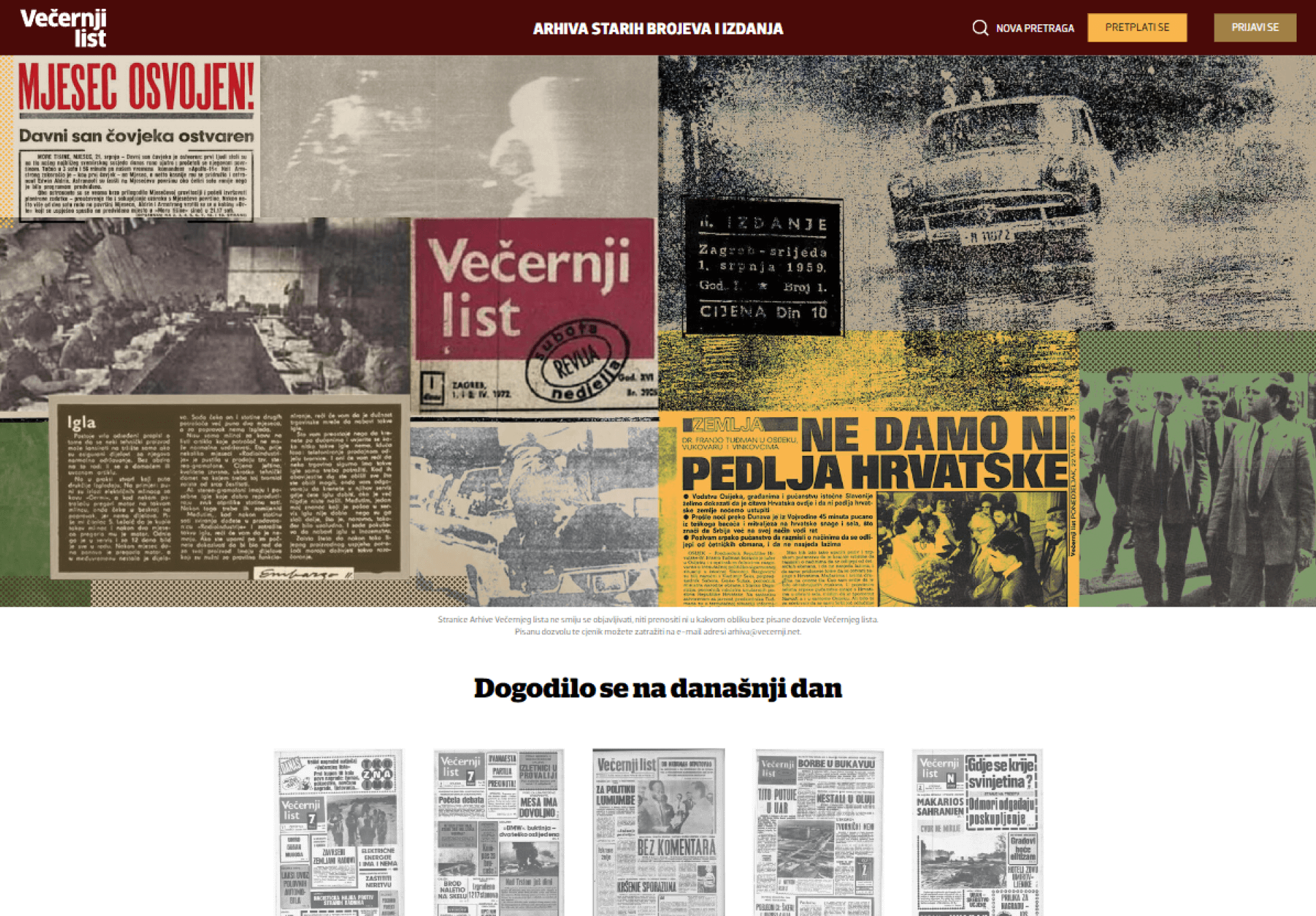 Večernji list, in a cooperation with the Globaldizajn company, enabled their readers to go back up to 60 years in the past. From now on, you can find old editions of newspapers in the Večernji list archives, and a subscription on the web application allows you to search through archives unlimitedly by terms you’re interested in or by publication dates.