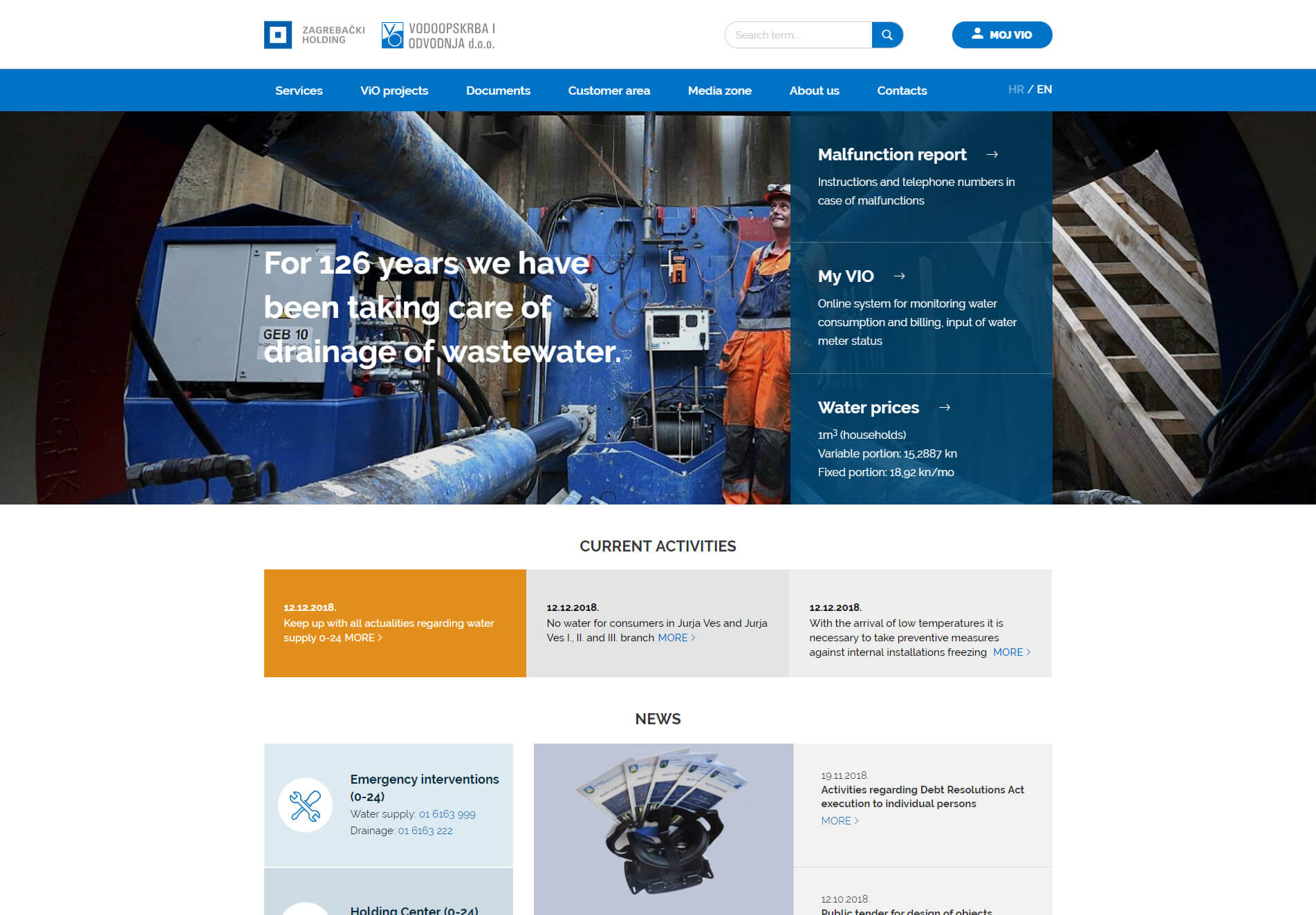 The long-standing successful cooperation between Vodopskrba i odvodnja and Globaldizajn has resulted with completely new, user-friendly web sites. Modern design enables easy access to all the information and availability of Customer area provides complete user experience. Furthermore, you can download documents, forms, get informed about the activities that ViO performs, and for all tourists, foreigners and other users, full content is available also in English.